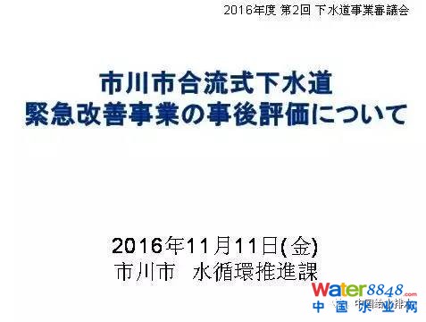 市川市經過十年的改造,十年過了以后,后面的三年要對結果進行評估。評估報告展示了多年改善合流制下水道的成果。