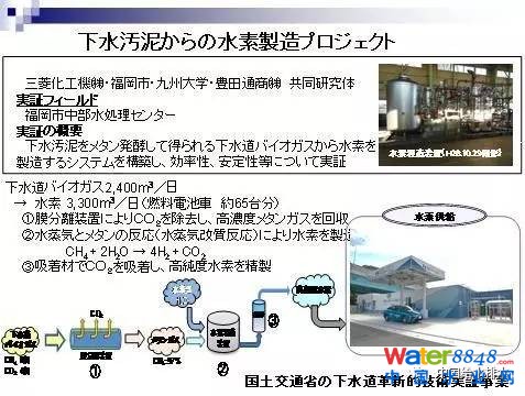 該設施建在福岡市。通過這個設施,每天會收集到3300m3的氫氣,可供60臺氫氣燃油汽車使用一天。到目前為止,在日本還只有這一家可以通過污泥收集氫氣以后進行氫氣能源供給。