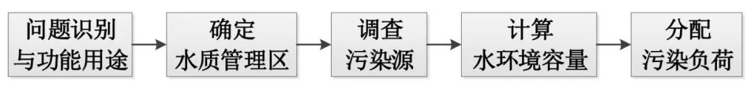 基于“總量控制”的污染物負荷削減及徑流控制的思路,旨在從水環(huán)境保護目標出發(fā),以受納水體對某種污染物的最大允許排放量為依據(jù),確定污染物的最大排放負荷,從而對污染源進行有效管控。TMDL的實施步驟如下: