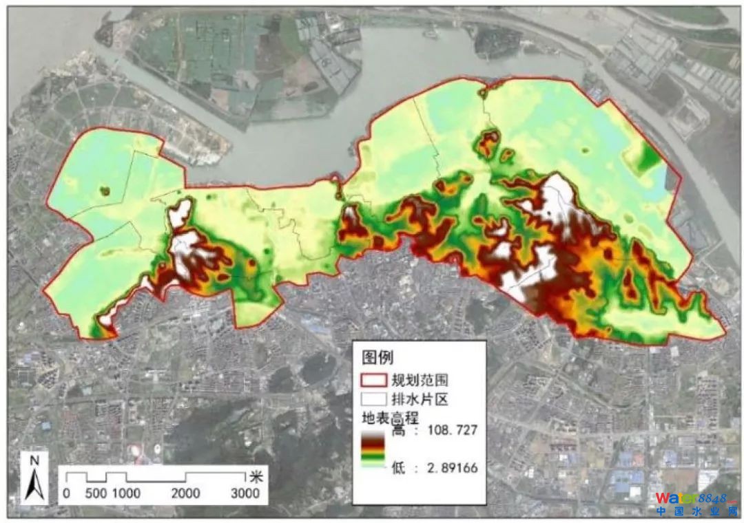 DEM流域劃分:通過GIS的水文分析,劃分具有分水嶺的匯水區(qū)邊界。