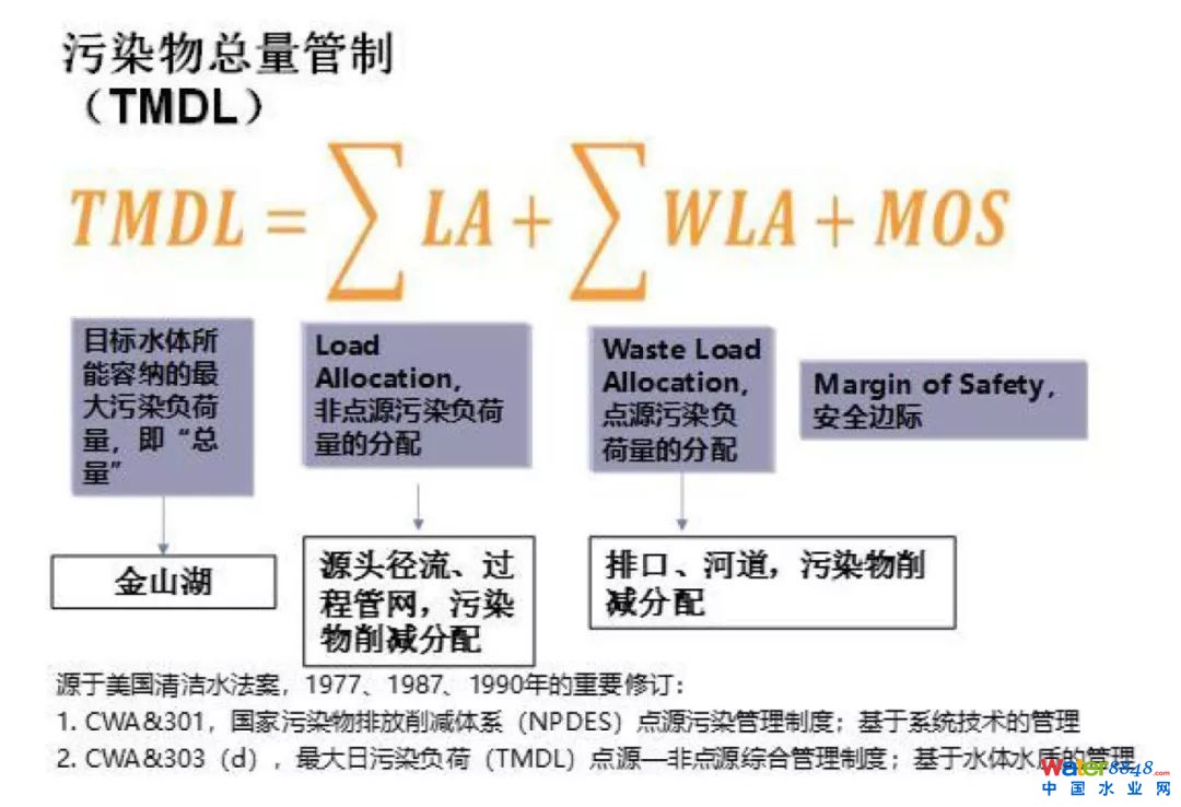 TMDL(Total Maximum Daily Load,最大日負荷總量)是指“在滿足水質(zhì)標準的條件下,水體能夠接受的某種污染物的最大日負荷量,包括點源和非點源的污染負荷分配,同時要考慮安全臨界值和季節(jié)性的變化,從而采取適當?shù)奈廴究刂拼胧﹣肀WC目標水體達到相應的水質(zhì)標準”。其目標是識別具體污染控制單元及其土地利用狀況,對單元內(nèi)點源和非點源污染物的排放濃度和總量提出控制措施,從而引導整個流域執(zhí)行最好的流域管理計劃。