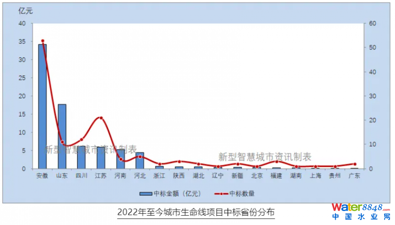 2022年至今城市生命線(xiàn)項(xiàng)目中標(biāo)省份分布