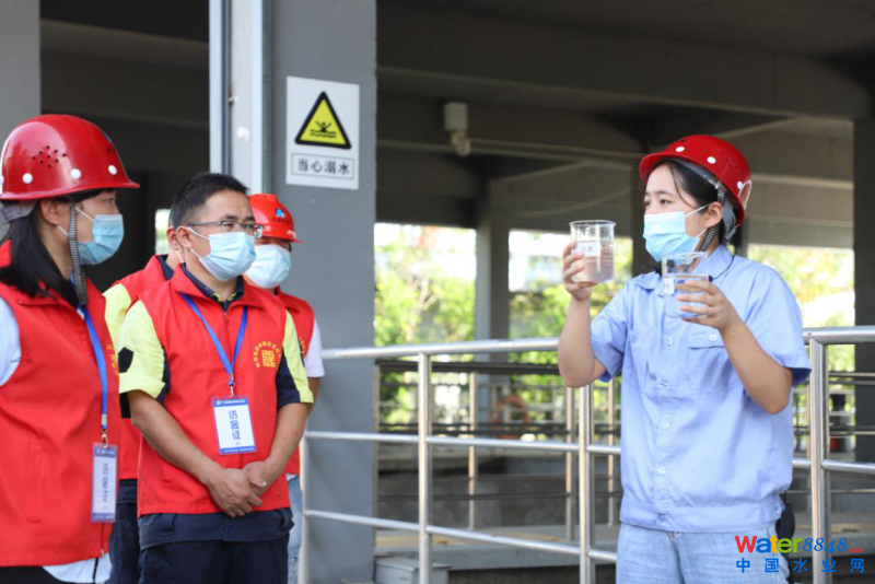 (講解員正在向參觀(guān)者講解污水處理的過(guò)程)