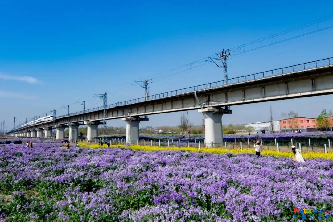 在迎賓路和青鹽高鐵交匯之處,一片占地11萬平方米的壯麗花海如約綻放,金黃的油菜花與淡紫的二月蘭競相斗艷,引得無數(shù)市民紛紛前往駐足欣賞。