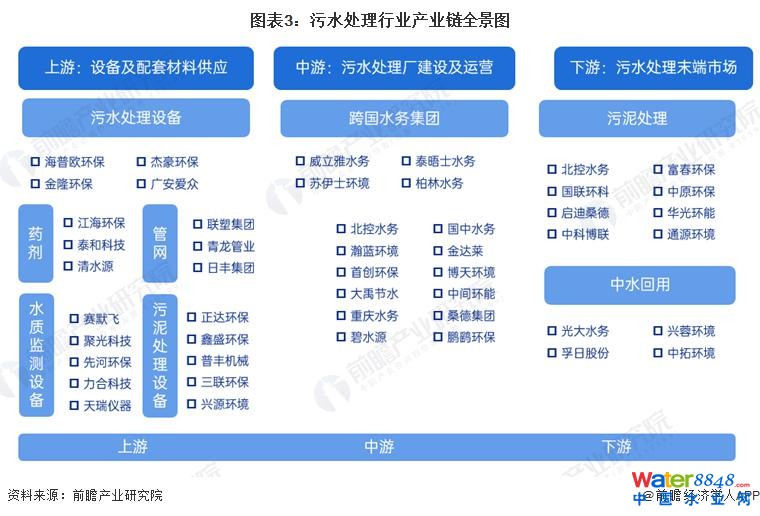 在上游領(lǐng)域,污水處理設(shè)備及配套材料供應(yīng)代表企業(yè)有海普歐環(huán)保、杰豪環(huán)保、清水源、泰和科技、賽默飛、先和環(huán)保、正達(dá)環(huán)保等 ; 在中游污水處理設(shè)施建設(shè)與運(yùn)營領(lǐng)域,代表企業(yè)有北控水務(wù)、首創(chuàng)環(huán)保、重慶水務(wù)、碧水源、國中水務(wù)、博天環(huán)境、瀚藍(lán)環(huán)境、金達(dá)萊、大禹節(jié)水等 ; 在下游市場,代表企業(yè)有啟迪桑德、國聯(lián)環(huán)科、中科博聯(lián)、光大水務(wù)、興蓉環(huán)境、孚日股份、中拓環(huán)境等。