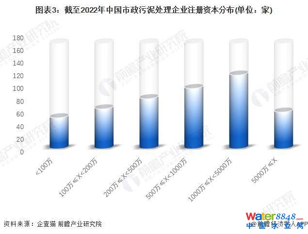 ——市政污泥處理企業(yè)注冊資本在500萬以上的企業(yè)接近60%