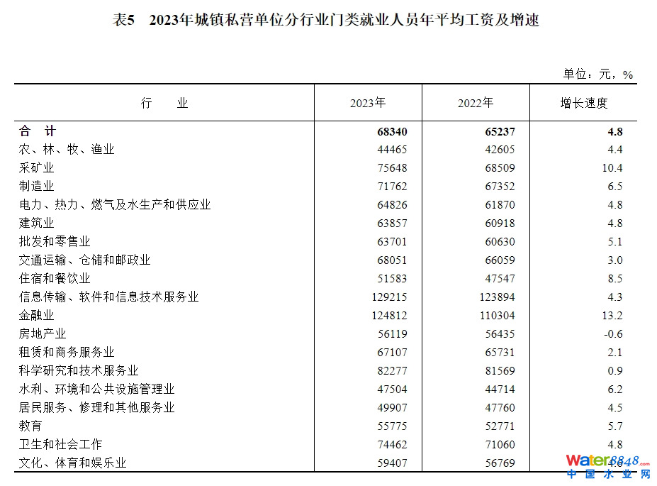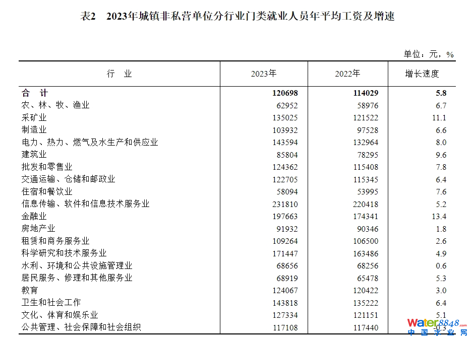 WATER8848前言:國(guó)家統(tǒng)計(jì)局最新披露的2023年平均工資數(shù)據(jù)顯示,電力、熱力、燃?xì)饧八a(chǎn)和供應(yīng)業(yè)的年平均工資達(dá)到了143594元,同比增長(zhǎng)8.0%。這一數(shù)據(jù)不僅揭示了該行業(yè)的薪資水平,也反映了其在國(guó)內(nèi)經(jīng)濟(jì)中的重要地位以及勞動(dòng)力市場(chǎng)的供需狀況。