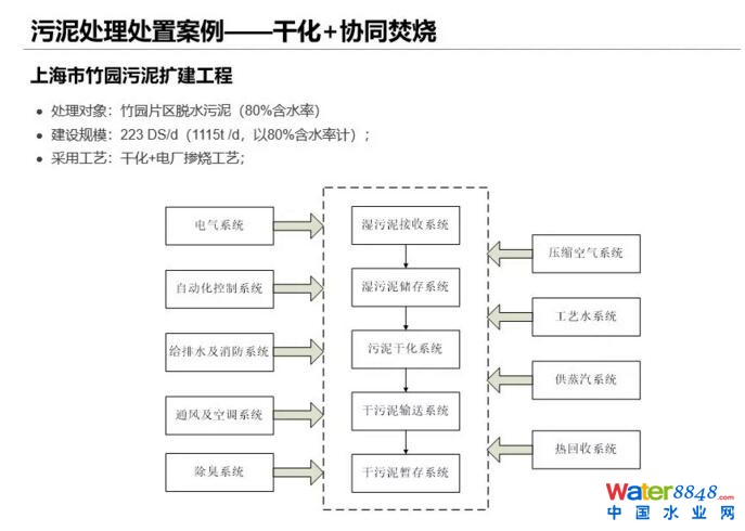 (3)上海市竹園污泥擴(kuò)建工程采用干化+協(xié)同焚燒的處理工藝,處理竹園片區(qū)的脫水污泥。