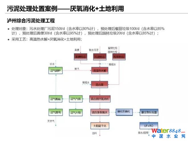(5)瀘州綜合污泥處理工程采用厭氧消化+土地利用工藝,處理污水處理廠脫水污泥、預(yù)處理后餐廚垃圾、預(yù)處理后糞便和預(yù)處理后園林垃圾。