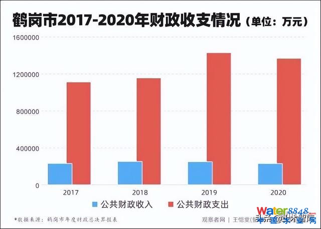 2018年、2019年、2020年,鶴崗全市公共財政收入分別為25.2億元、24.9億元、23億元,而公共財政支出卻分別達(dá)到115.7億元、143億元和136.8億元。