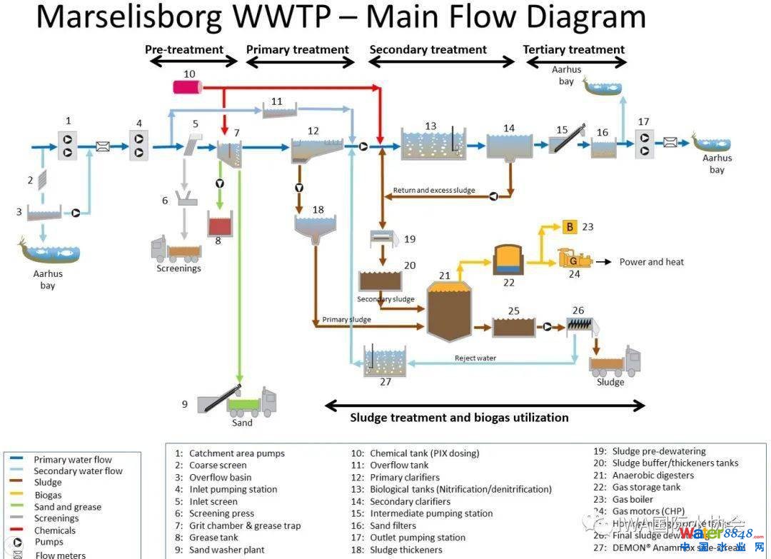 Aarhus是北歐國家丹麥的第二大城市,人口規(guī)模約30萬,距丹麥首都哥本哈根有三個多小時的車程。這里有一座叫Marselisborg 的污水廠,很多當?shù)鼐用窆烙嬕矎奈绰犨^。不過在2016年國際能源署(IEA)發(fā)布了《世界能源展望2016》之后,這座污水廠吸引了世界各地專家團的拜訪。原因是由于這座污水廠的改造,Aarhus成為全球首個用污水處理回收的能量來滿足本地自來水供給服務能耗需求的城市。