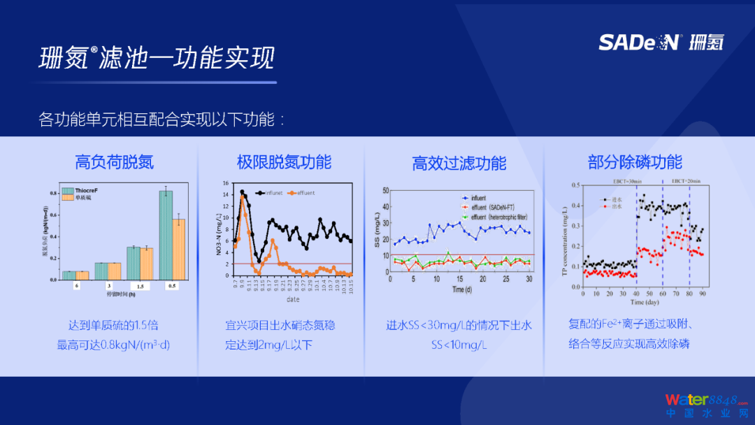 這是珊氮 技術(shù)第二次亮相青島國(guó)際水大會(huì)(更多珊氮 技術(shù)信息請(qǐng)點(diǎn)擊鏈接——深度脫氮利器 | SADeN 亮相青島國(guó)際水大會(huì)),一年來(lái),不斷打磨產(chǎn)品、迭代創(chuàng)新,開(kāi)發(fā)了珊氮 濾池及珊氮 濾池-珊氮 智能控制系統(tǒng),實(shí)現(xiàn)工藝優(yōu)化及智能控制,為客戶提供全方位效果保障;不斷推動(dòng)珊氮 技術(shù)的商業(yè)化應(yīng)用,取得了多個(gè)工程案例的成功應(yīng)用,包括宜興城市污水資源概念廠(TN≤3 mg/L)、六安鳳凰橋藍(lán)色水質(zhì)凈化廠項(xiàng)目(TN ≤ 10 mg/L)等,助力污水廠提標(biāo)改造、總N達(dá)標(biāo)。“未來(lái)將繼續(xù)不斷推廣應(yīng)用、拓展商業(yè)化規(guī)模,助力水質(zhì)提高、實(shí)現(xiàn)碳減排。”