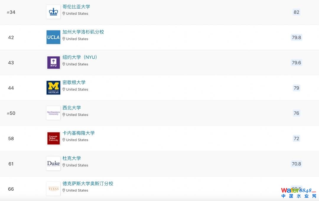 哥倫比亞大學(xué)繼續(xù)下跌,由去年的第 23 名降至第 34 名,加州大學(xué)洛杉磯分校排名變動(dòng)較大,下降了 13 名。