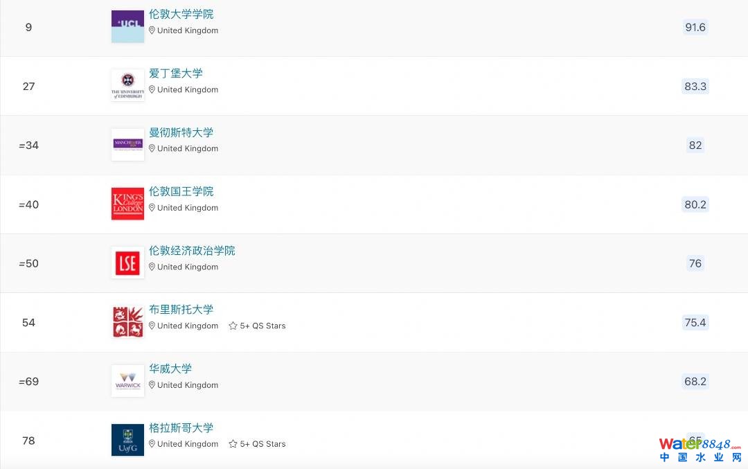 王曼愛華中,除了華威大學(xué)(第 69 名),愛丁堡大學(xué)(第 27 名)、曼徹斯特大學(xué)(第 34 名)、倫敦國(guó)王學(xué)院(第 40 名)依舊保持在世界前 40 的水準(zhǔn)。