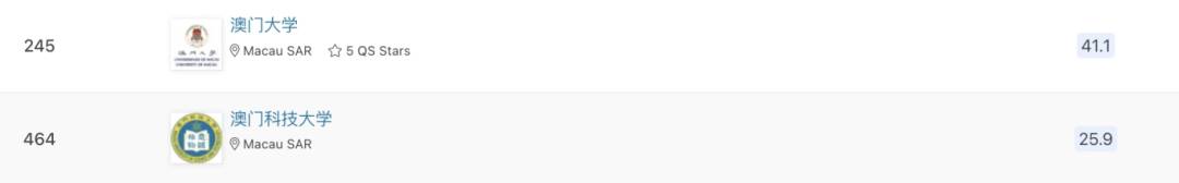 澳門的兩所高校排名都在穩(wěn)步上升,澳門大學(xué)本次上升了9名,排世界第245;