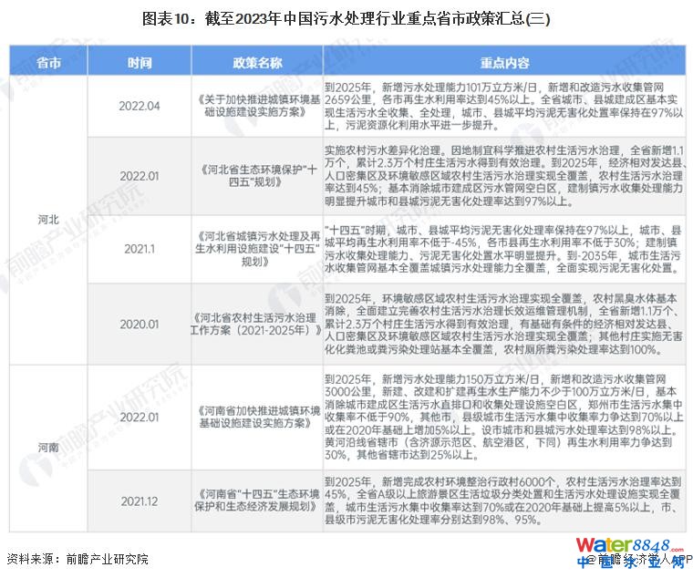 ——重點(diǎn)省市污水處理行業(yè)政策匯總