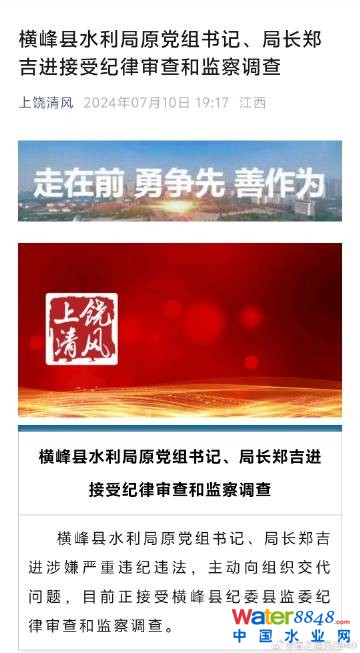 江西超話 《江西省橫峰縣水利局原黨組書記、局長鄭吉進(jìn)接受紀(jì)律審查和監(jiān)察調(diào)查》