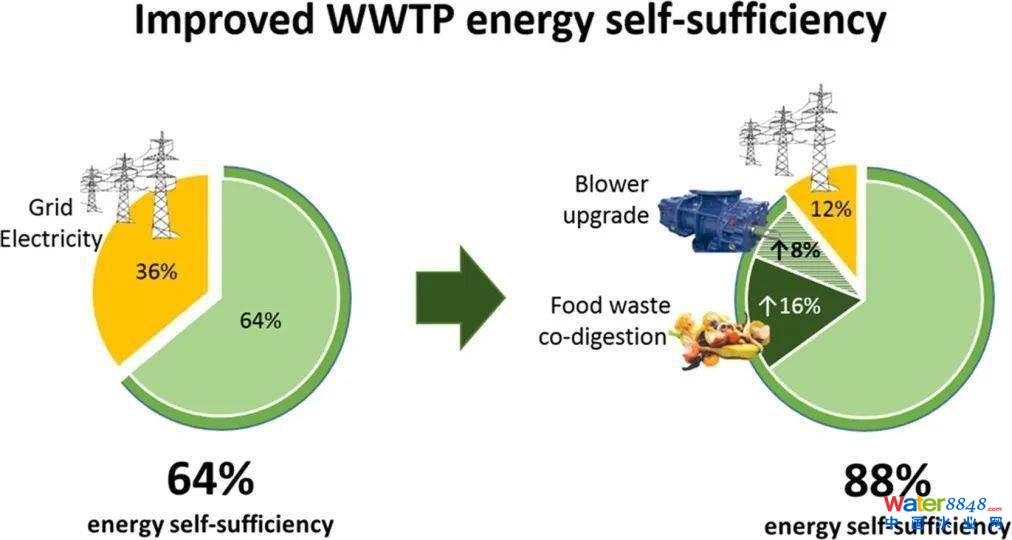 這篇報(bào)告通過對一個(gè)污水廠長達(dá)5年的跟蹤研究,顯示了通過多管齊下的方式,污水處理廠有顯著的潛力實(shí)現(xiàn)能源自給,自給率也由64%提高到了88%,更重要的是,它為其他污水廠的管理提供了很具體的參考信息,特別是在方法的選擇組合上,管理者應(yīng)當(dāng)考慮與每項(xiàng)方法相關(guān)的能源價(jià)格、運(yùn)輸距離、污泥處理以及對工藝運(yùn)行的影響這些因地點(diǎn)而異的變量因素。