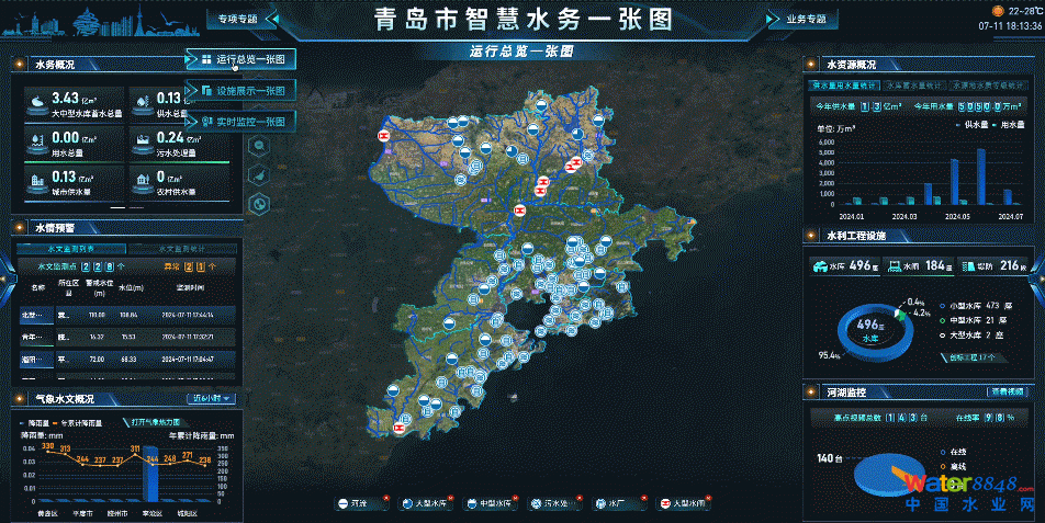 2024年,山東省加快形成多部門協(xié)同治水的“大水利”格局。青島市在海納云的助力下,率先邁出了智慧水務(wù)建設(shè)的重要一步,開啟了水務(wù)管理的新篇章。針對(duì)水利水務(wù)業(yè)務(wù)復(fù)雜,信息難以全局統(tǒng)覽等情況,海納云助力青島市構(gòu)建“一平臺(tái)、N應(yīng)用”、軟硬一體化的智慧水務(wù)管理系統(tǒng),打造“青島智慧水務(wù)管理平臺(tái)”,包含水資源監(jiān)控管理信息系統(tǒng)、河湖智能監(jiān)控系統(tǒng)、供排水監(jiān)管應(yīng)用系統(tǒng)、水利工程運(yùn)行管理數(shù)字系統(tǒng)、水旱災(zāi)害防御系統(tǒng)等10大專題系統(tǒng),建設(shè)“智慧水務(wù)一張圖”,實(shí)現(xiàn)數(shù)字信息全面獲取、水務(wù)要素全面集成、管理行為全面智能。