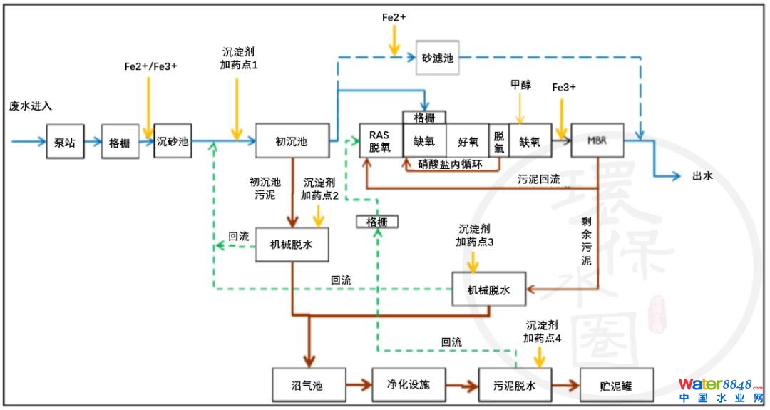 首先通過A2O工藝,利用微生物分解有機(jī)物將氨轉(zhuǎn)化為氮?dú)猓ㄍㄟ^預(yù)反硝化去除氮,然后使用補(bǔ)充碳進(jìn)行反硝化)。接著,膜將取代傳統(tǒng)沉降法而作為廢水處理的最后階段。
