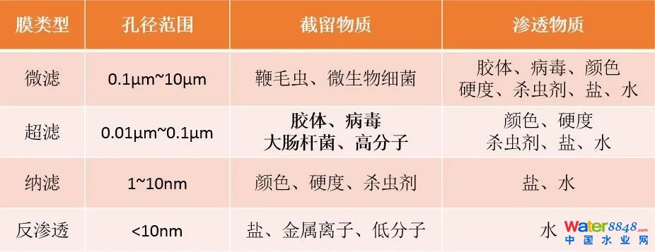 膜按照孔徑分可以分為以下4類,國內(nèi)外使用的膜生物反應(yīng)器大部分濾膜孔徑集中在0.05-0.4μm之間,基本介于超濾、微濾膜臨界點(diǎn)附近。