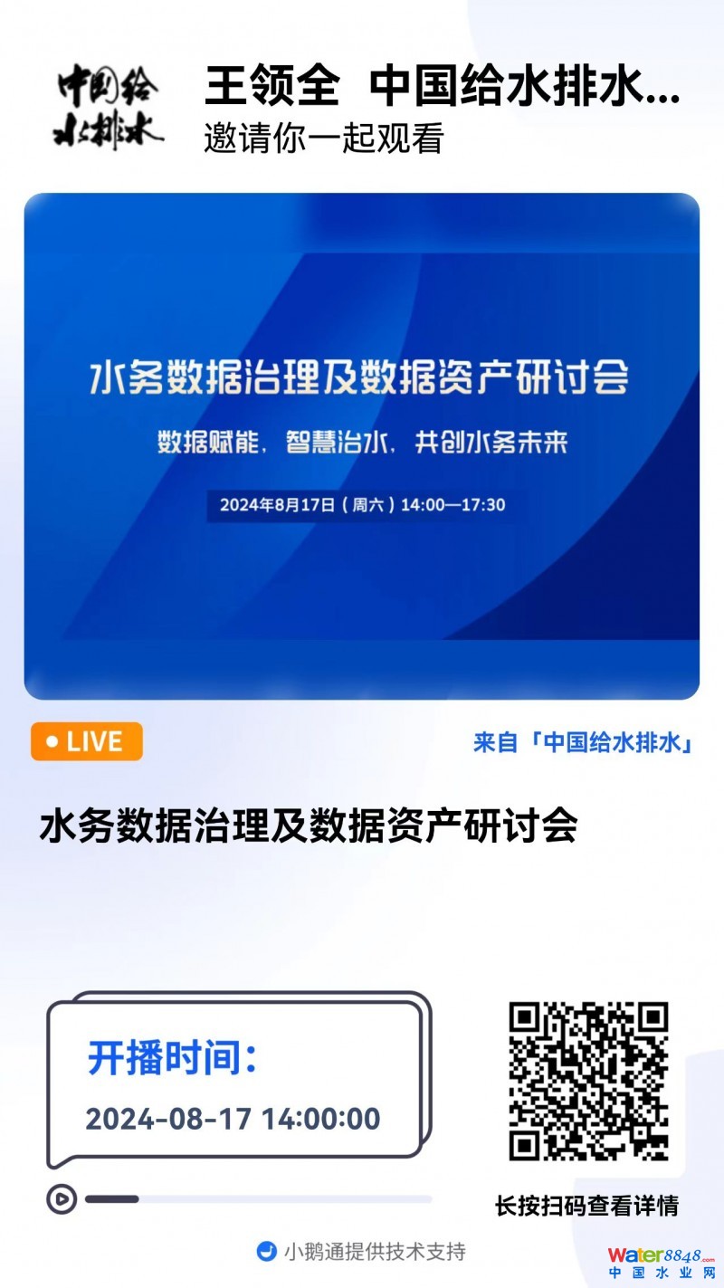 水務(wù)數(shù)據(jù)治理及數(shù)據(jù)資產(chǎn)研討會 直播時間:2024年8月17日(周六)14:00—17:30 2024-08-17 14:00:00 開始