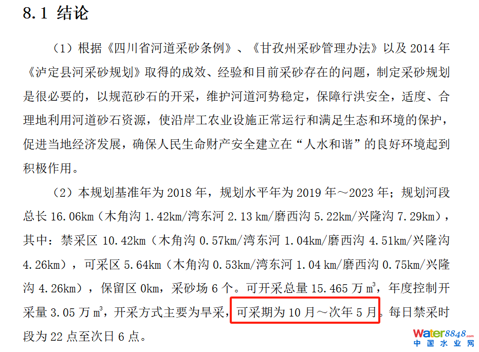 瀘定縣大渡河流域采砂規(guī)劃禁采期未包含全部禁漁期