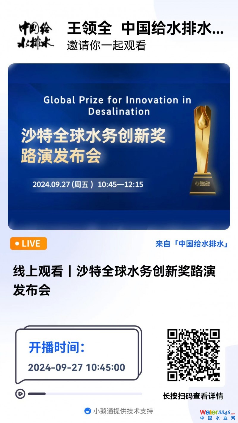 線上觀看|沙特全球水務(wù)創(chuàng)新獎(jiǎng)路演發(fā)布會(huì)