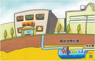 污水應經(jīng)隔油沉砂池后再接入相應的市政污水管。