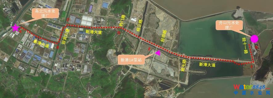 該工程起點(diǎn)位于郎熹電廠附近島北污水處理廠,終點(diǎn)止于舟山市污水處理廠,總投資約9400萬元。工程于2023年9月15日開工,于近期完成通水試驗(yàn),順利進(jìn)入運(yùn)行階段,比原計(jì)劃工期提前1個(gè)月完工。