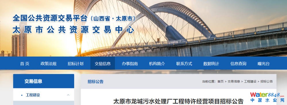 日前,從全國公共資源交易平臺、太原市公共資源交易中心獲悉,太原市龍城污水處理廠工程特許經(jīng)營項目招標(biāo)公告已公示,項目總投資為167157.45萬元(不含征拆費)。