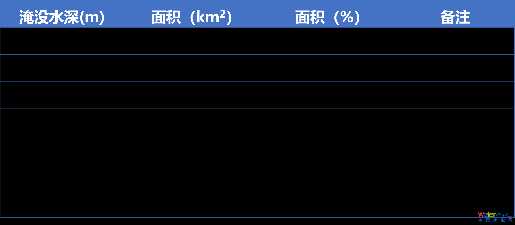 表 1 主城區(qū)洪澇模型積水范圍統(tǒng)計(jì)表