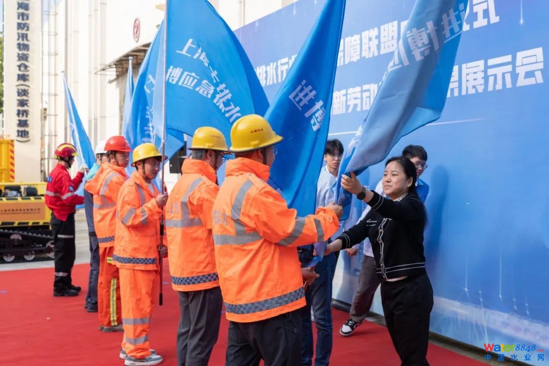 成立儀式上,排水公司舉行了進(jìn)博保障防汛演練并發(fā)出全力以赴服務(wù)保障進(jìn)博會(huì)的倡議,與會(huì)領(lǐng)導(dǎo)為排水行業(yè)進(jìn)博保障聯(lián)盟揭牌并向11支應(yīng)急保障隊(duì)伍授旗。