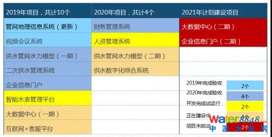 2018年規(guī)劃完以后,福州水務形成了數字水務項目清單,供水方面計劃實施16個項目,其中已經在實施的有14個,2019年完成驗收2個,2020年完成驗收4個,還在開發(fā)建設的8個。