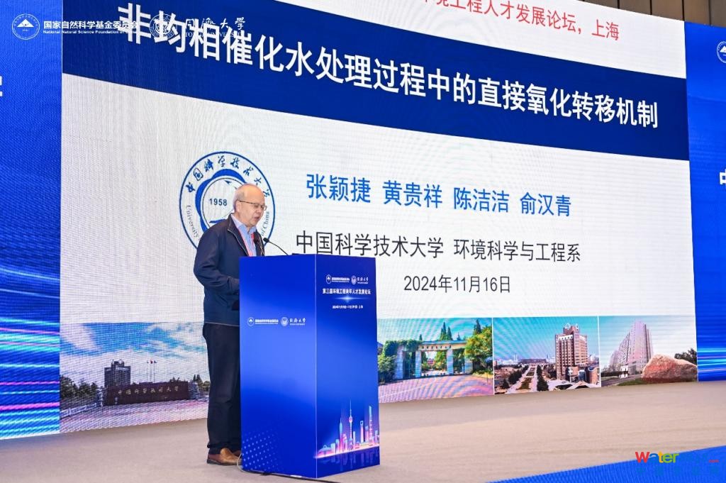 俞漢青院士以《非均相催化水處理過程中的直接氧化轉(zhuǎn)移機(jī)制》為題,從現(xiàn)象發(fā)現(xiàn)、機(jī)制解析、工程驗(yàn)證三方面闡述了非均相催化技術(shù)發(fā)展過程,講述了如何從工程實(shí)踐中提煉出關(guān)鍵科學(xué)問題并加以持續(xù)深入研究。