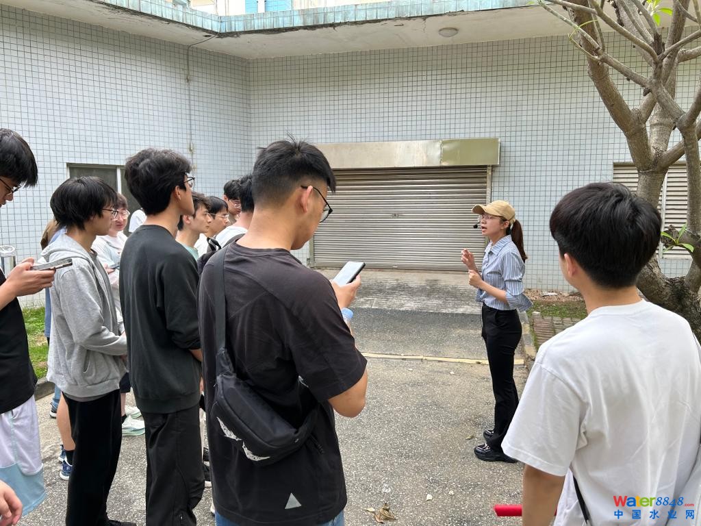 第六水廠廠長(zhǎng)余世銀帶領(lǐng)同學(xué)們參觀了水廠的全套工藝流程構(gòu)筑物,主要參觀了平流沉淀池、V型砂濾池、臭氧制備車間、生物活性炭濾池等。通過(guò)余世銀廠長(zhǎng)的生動(dòng)講解,解答了老師和同學(xué)們的疑惑。通過(guò)此次前往東莞市水務(wù)集團(tuán)參觀交流,學(xué)生們將課堂上學(xué)到的理論知識(shí)與實(shí)際工程案例相結(jié)合,更深入地理解給水和污水處理的工藝流程、構(gòu)筑物構(gòu)造和運(yùn)行管理難點(diǎn)。此外通過(guò)了解水務(wù)集團(tuán)的運(yùn)營(yíng)管理模式和水廠工作環(huán)境,學(xué)生們對(duì)自己的職業(yè)規(guī)劃有更清晰的認(rèn)識(shí)。