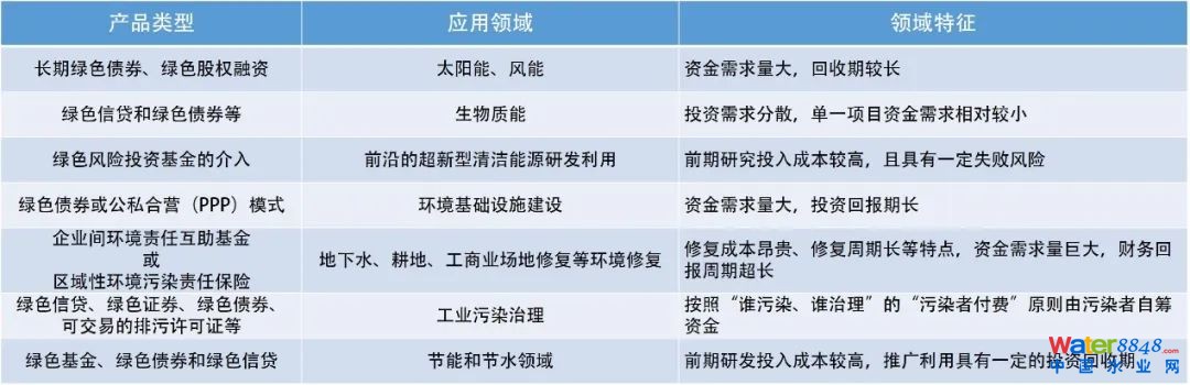 我國(guó)在清潔能源開(kāi)發(fā)、環(huán)境基礎(chǔ)設(shè)施建設(shè)、污染治理和節(jié)能節(jié)水等領(lǐng)域,已形成較成熟的綠色金融產(chǎn)品供給模式。這些模式綜合考量投資需求、回收周期和投資風(fēng)險(xiǎn),提供適用的綠色金融產(chǎn)品。