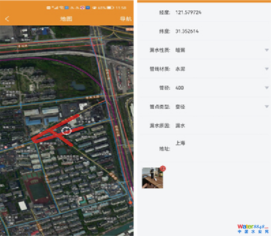 疑似漏水區(qū)域坐標(biāo)及管線分布圖發(fā)至聽漏人員手機(jī)APP