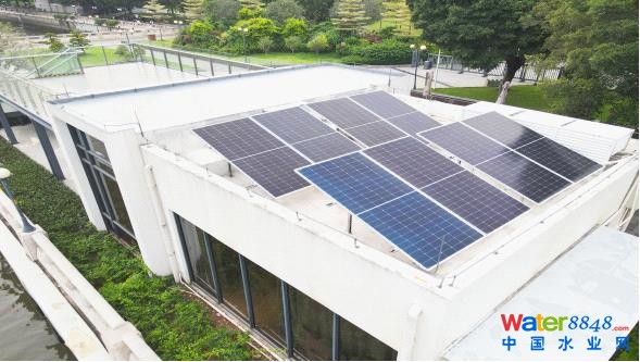 圖為獵德污泥碼頭黨群服務(wù)驛站樓頂光伏發(fā)電系統(tǒng)
