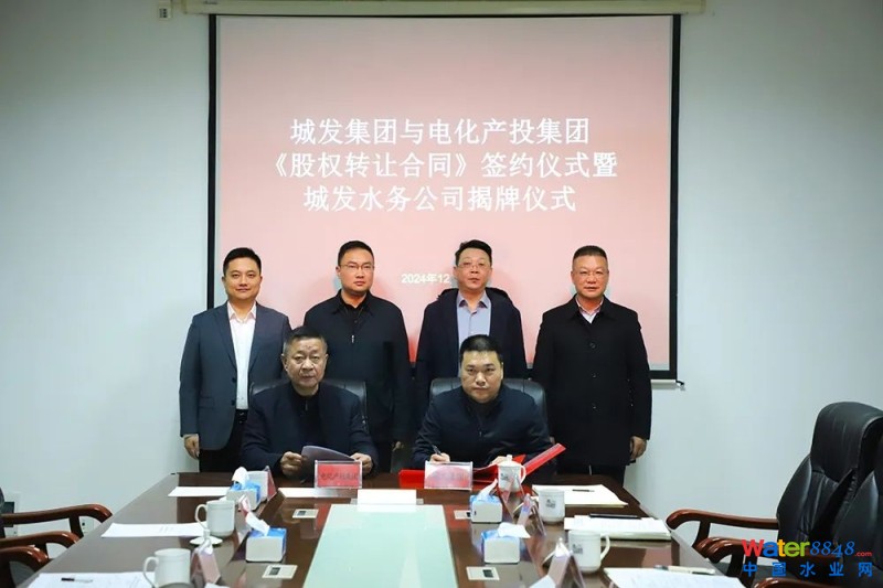 12月30日,城發(fā)集團(tuán)與電化產(chǎn)投集團(tuán)成功簽署水務(wù)板塊《股權(quán)轉(zhuǎn)讓合同》,湘潭城發(fā)水務(wù)有限公司(以下簡稱城發(fā)水務(wù))揭牌成立。市國資委黨委書記楊衛(wèi)國和黨委委員、副主任胡野天,城發(fā)集團(tuán)黨委書記、董事長周俊文,電化產(chǎn)投集團(tuán)黨委副書記、總經(jīng)理余磊出席簽約儀式,并共同為公司揭牌。