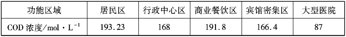 主要選取了居民集中的小區(qū)、行政中心區(qū)、具代表性的商業(yè)餐飲區(qū)、賓館密集區(qū)及醫(yī)院污水作為城市生活污水本底值調(diào)查對象。其監(jiān)測結(jié)果如表1