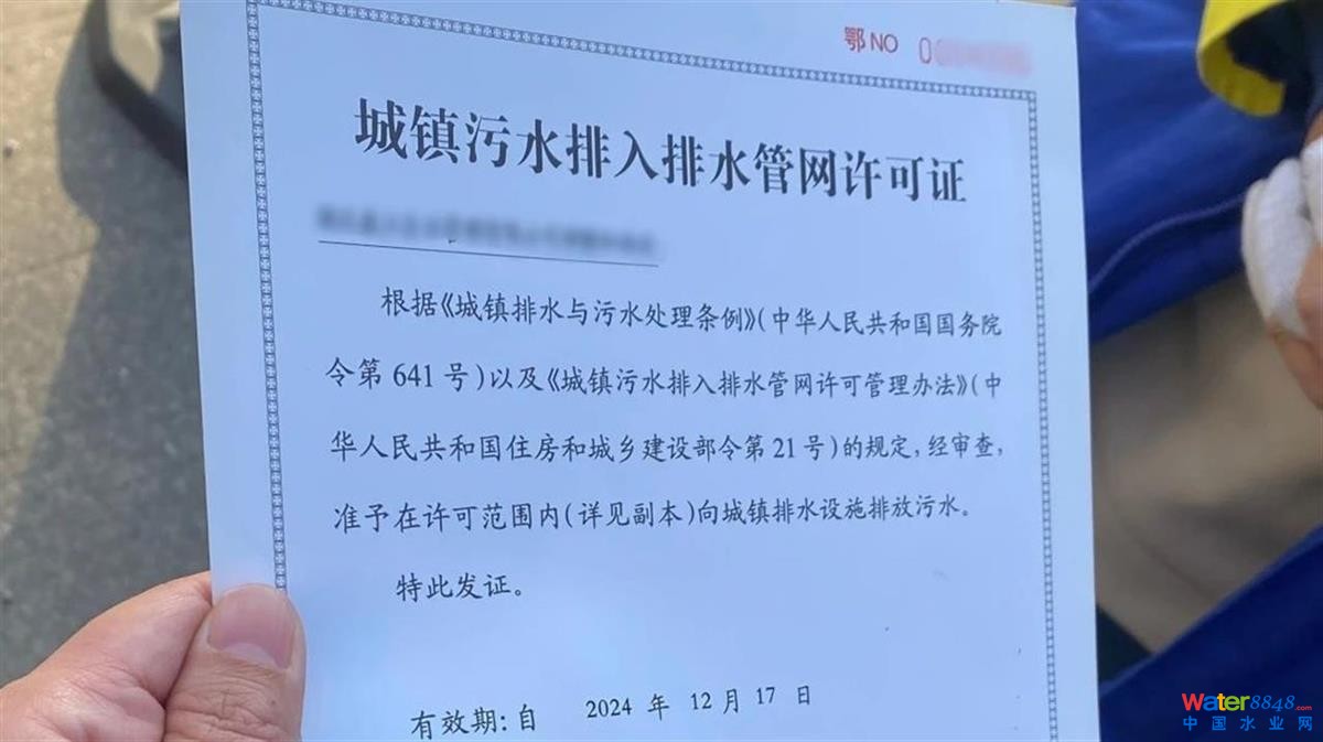洗車店負(fù)責(zé)人展示新辦理的排水證