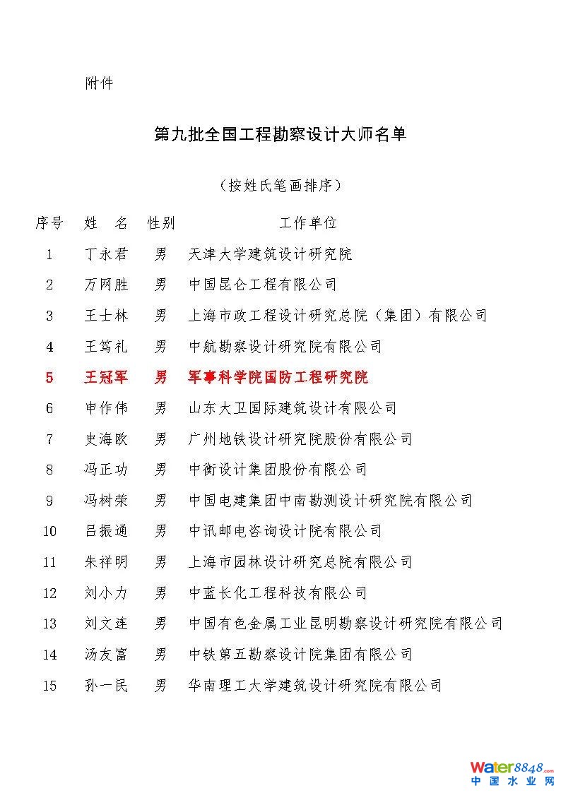 第九批全國工程勘察設(shè)計(jì)大師名單