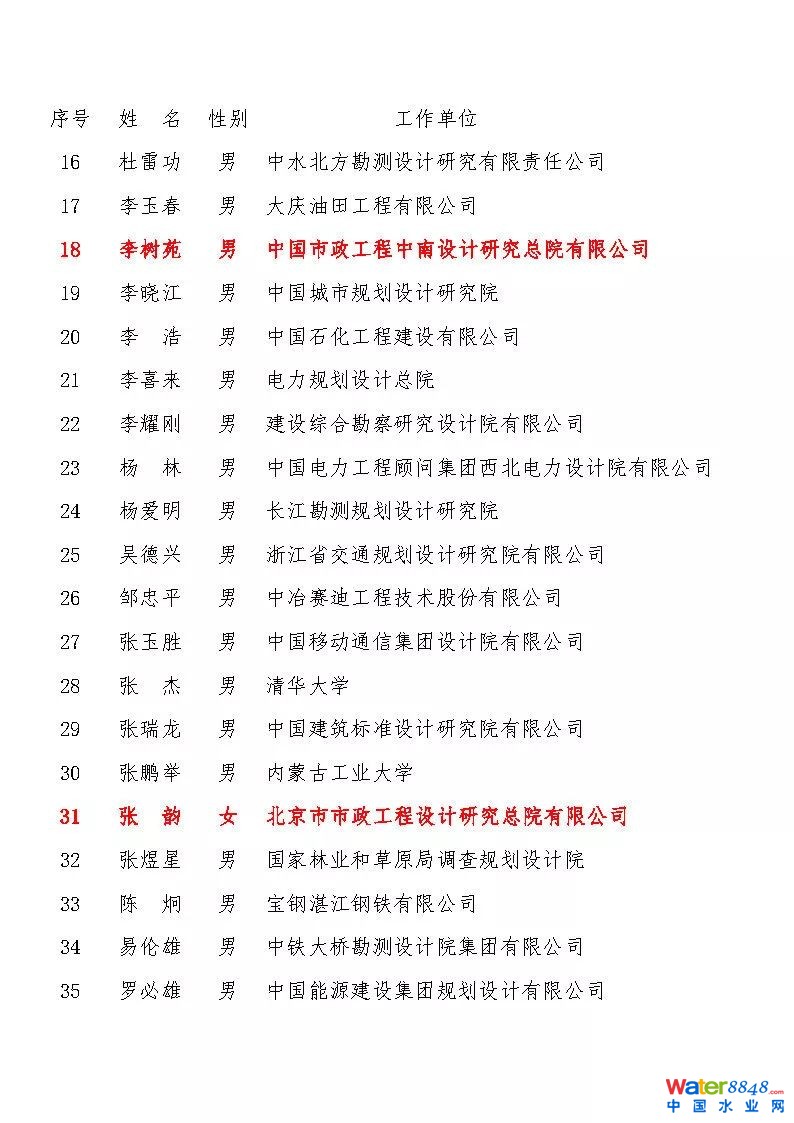 喜訊,水行業(yè)再添4位全國工程勘察設(shè)計(jì)大師!