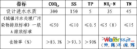 設(shè)計(jì)主要指標(biāo)進(jìn)出水水質(zhì)及去除率如下表所示。