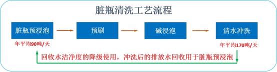 回收水潔凈度的降級(jí)使用。將玻璃瓶沖洗后的水進(jìn)行回收,作為第一道臟瓶的浸泡水,同時(shí)達(dá)到節(jié)水和臟瓶預(yù)浸泡的目的。