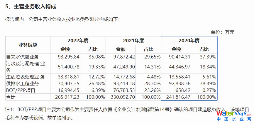 佛水環(huán)保主業(yè)基本來自控股股東或收購(gòu) 同一業(yè)務(wù)同年收入兩次IPO信披不一致 --2023年?duì)I收幾乎回到3年前 佛水環(huán)保主要從事自來水供應(yīng)、污水污泥處理、生活垃圾處理及相關(guān)供排水工程業(yè)務(wù)。此次深主板
