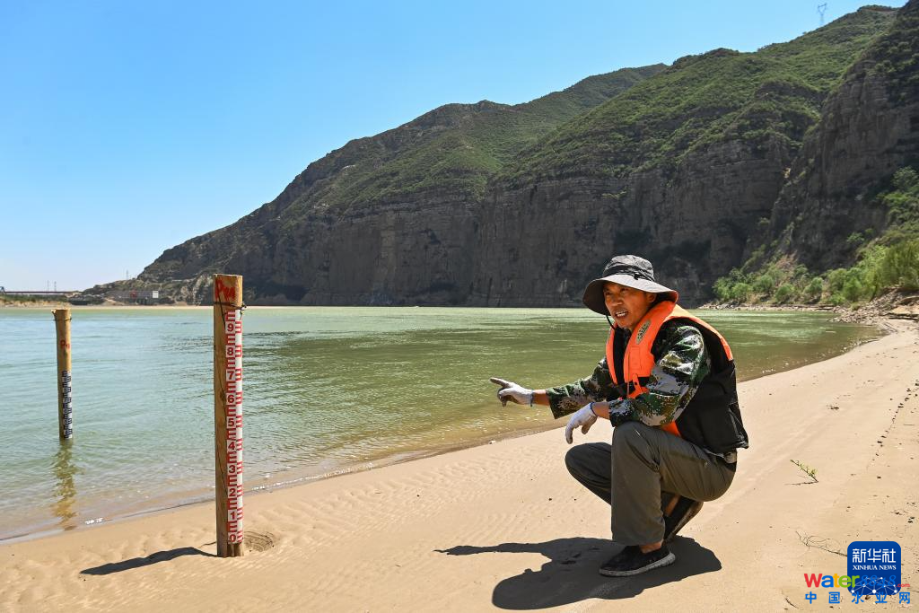 4月28日,龍門水文站工程師白玉山在檢查水尺。