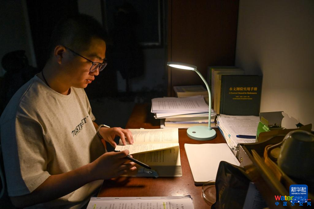4月28日,龍門水文站水情組副組長霍鳴沖下班后在宿舍學(xué)習(xí)水文知識。