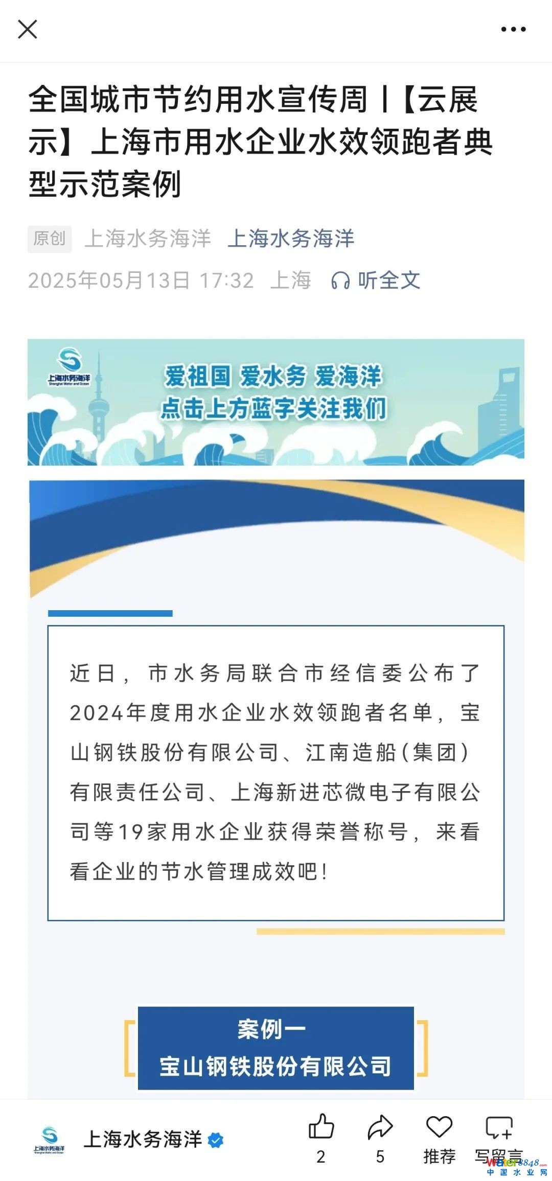 市相關(guān)部門遴選出一批用水指標(biāo)先進、節(jié)水成效突出且具有典型經(jīng)驗的用水企業(yè)、工業(yè)園區(qū)和公共機構(gòu),匯編其節(jié)水工作亮點與實踐成果,通過“上海水務(wù)海洋”微信公眾號向社會公開展示,充分發(fā)揮對標(biāo)達標(biāo)優(yōu)秀企業(yè)的引領(lǐng)作用,引導(dǎo)全社會深刻認識水資源可持續(xù)利用的重要性,推動形成“學(xué)標(biāo)桿、創(chuàng)標(biāo)桿”的節(jié)水風(fēng)尚,助力實現(xiàn)水資源高效利用與社會經(jīng)濟協(xié)調(diào)發(fā)展的良性互動。